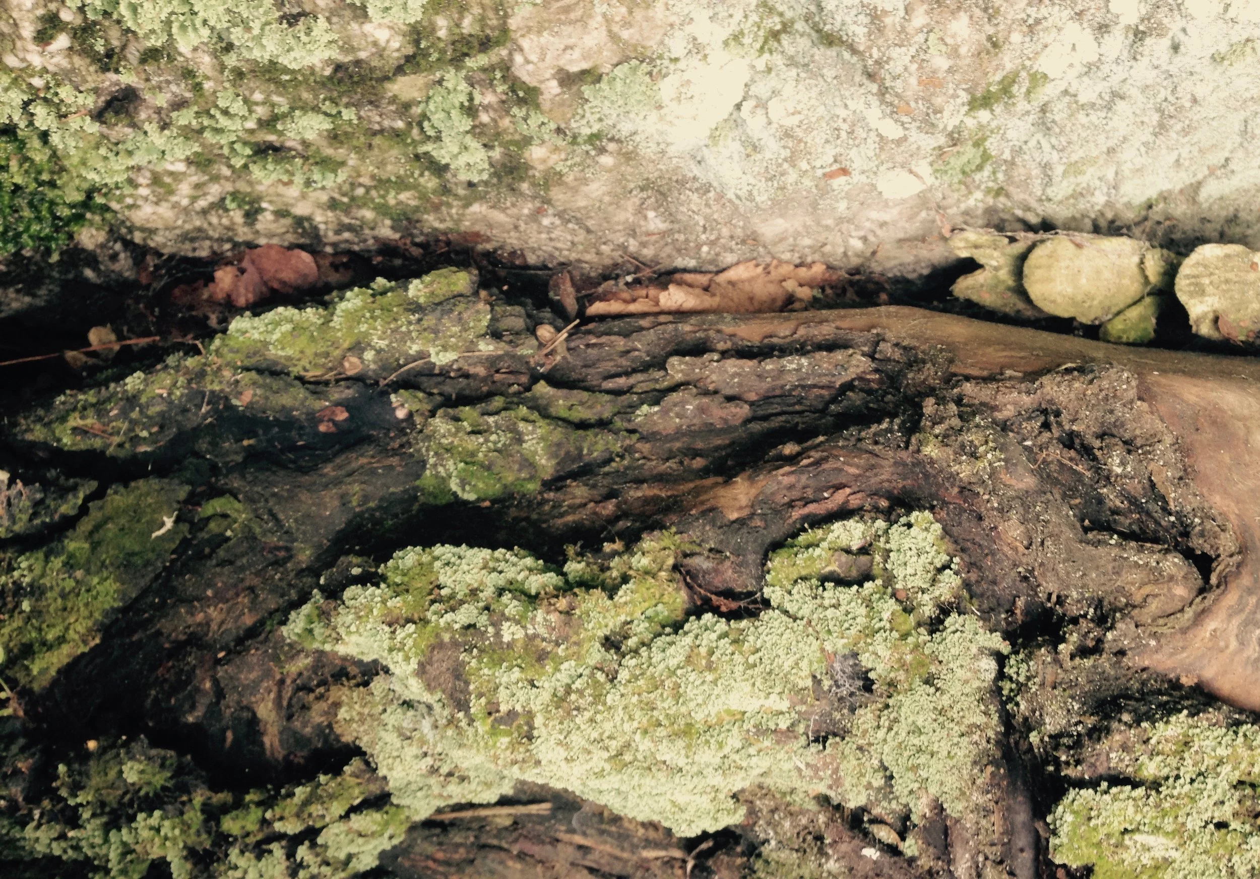 -this moss crusted, boulder spilled, cloud soaked mountain ridge; where trees poke out of rocks like fingers through fabric; where roots chink the seams of stone walls like putty.